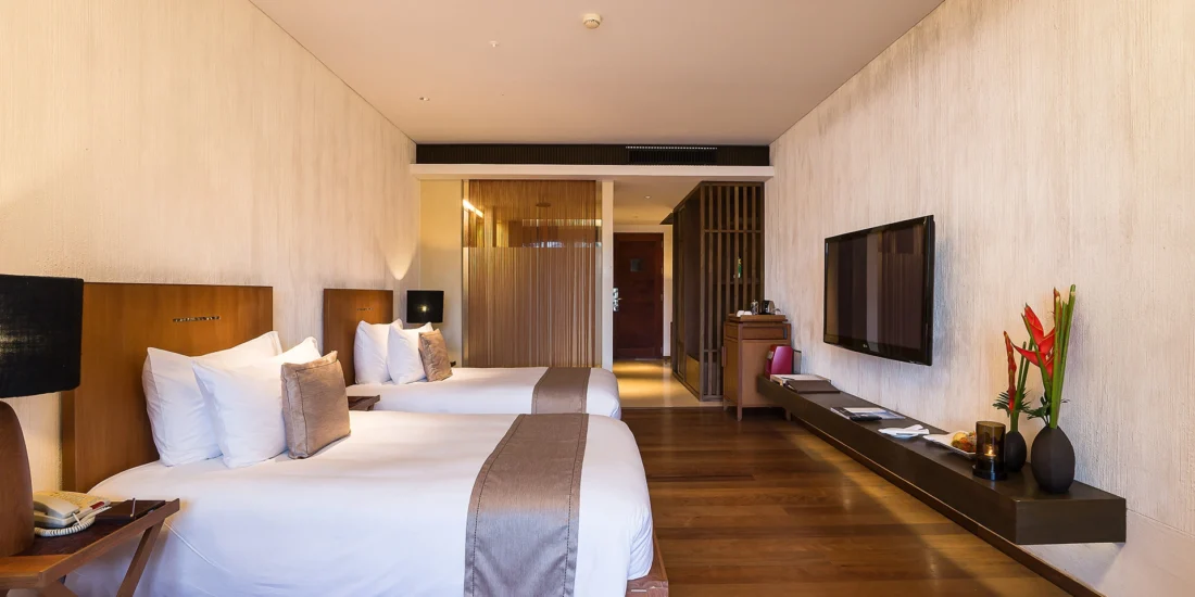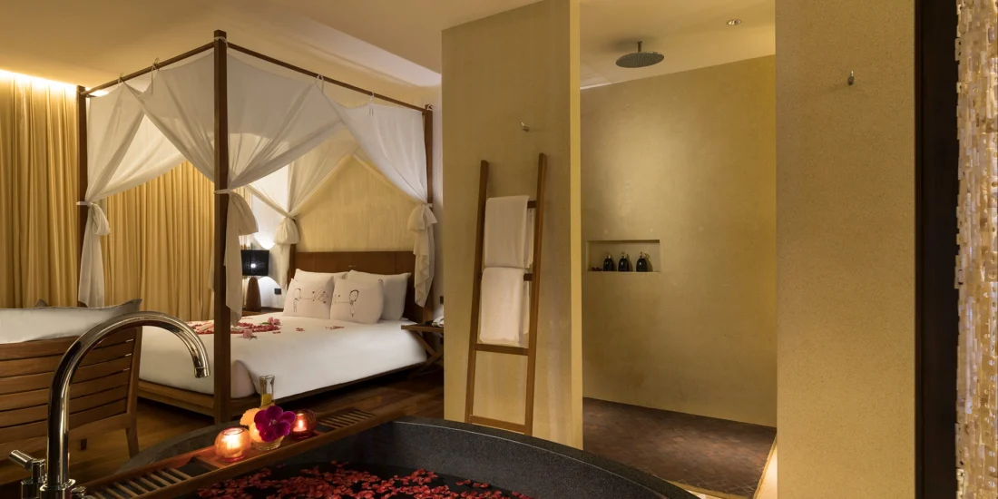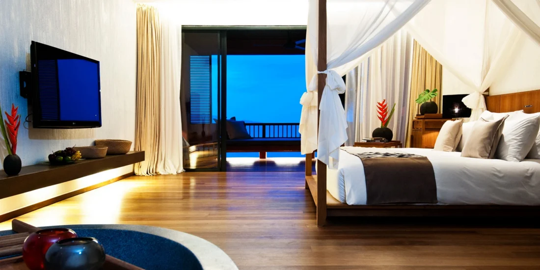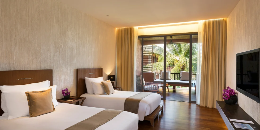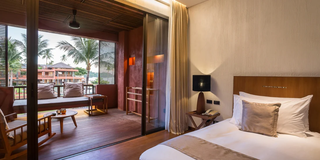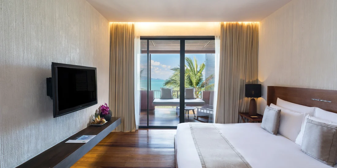 Hansar Samui offers luxurious, beachfront and spacious accommodation with unobstructed sea views from every room, and supersize private balconies and oversize daybeds for outdoor living and entertaining. Open plan yet intimate, each room has been artfully finished with teak floors, terrazzo bathrooms and local textiles to provide a sense of place. Chic custom furnishings, large flat screen TVs balance the design’s natural touches with a modern flair.